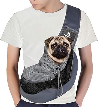 Amazon.com: BREADEEP - Bolso bandolera para mascotas, pequeño, para perro, gato, para viajes, manos libres, mochila frontal con bolsa de malla transpirable, S, Negro : Productos para Animales