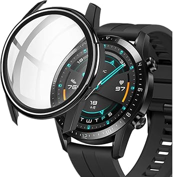 Amazon.com: Yrzper - Protector de pantalla para Huawei GT2 (1.811 in, ultra delgado, cristal templado, protección general, electrochapado, borde de defensa para Huawei GT2 1.811 in), color negro : Celulares y Accesorios