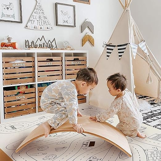 Amazon.com: FUNNY SUPPLTY Tabla de equilibrio de madera Tabla de oscilación preescolar aprendizaje de niño Yoga Tabla curva Tabla balancín Tabla Montessori juguete de 35 pulgadas / 88.9 cm. tamaño para niños