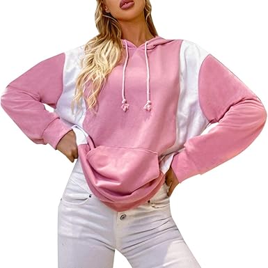 Amazon.com: Sudaderas con capucha para mujer, sudaderas con capucha de bolsillo suéter de manga larga Tops contraste colores sudadera con capucha : Ropa, Zapatos y Joyería