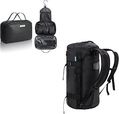 Amazon.com: MIER Mochila de lona grande con compartimento para zapatos, resistente y resistente al agua, 90 l y bolsa de aseo para hombres con gancho para colgar resistente al agua, bolsa de