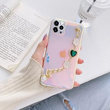 Amazon.com: Omio Compatible con iPhone 12 Pro Case - Pulsera de cadena para niñas y mujeres, correa de muñeca de diamantes de imitación de lujo, cadena de silicona suave con láser para