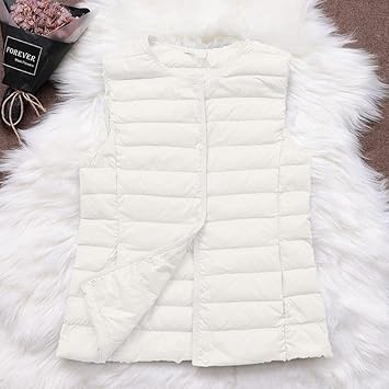 KHJH Chaleco Plumas Mujer,Chaleco De Plumón para Mujer,Grande,Blanco,Acolchado,Ligero,Sin Mangas,Abrigo,Cuello Redondo,Invierno,Cálido,Plegable,Acolchado,Chaleco para Senderismo Diario,Viajes : Amazon.es: Ropa
