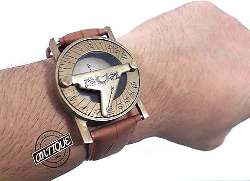 Amazon.com: AV Vintage Sundial Brújula con correa de cuero retro antiguo reloj brújula náutica viaje desgaste hecho a mano artículo : Deportes y Actividades al Aire Libre