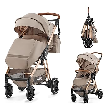 Amazon.com: HEAO Cochecito de bebé y moisés ajustable, cochecito plegable con bolsa para mamá y toldo ajustable, cesta de almacenamiento, cochecito antigolpes, color beige : Bebés