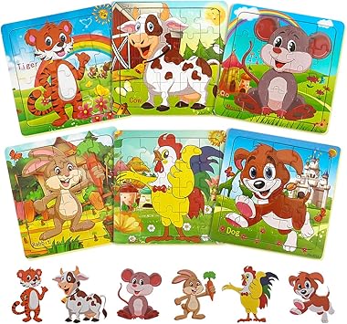 Amazon.com: Rompecabezas de madera para niños de 3 a 6 años de edad, para niños y niñas, 12 unidades : Juguetes y Juegos