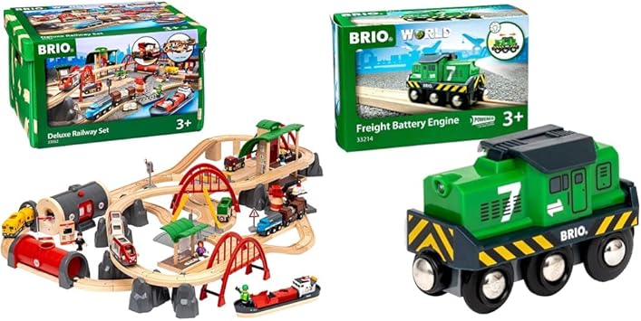 Amazon.com: Brio World 33052 Deluxe - Juego de tren de juguete de madera para niños de 3 años en adelante, verde y mundo 33214 - Motor de batería de carga - 1