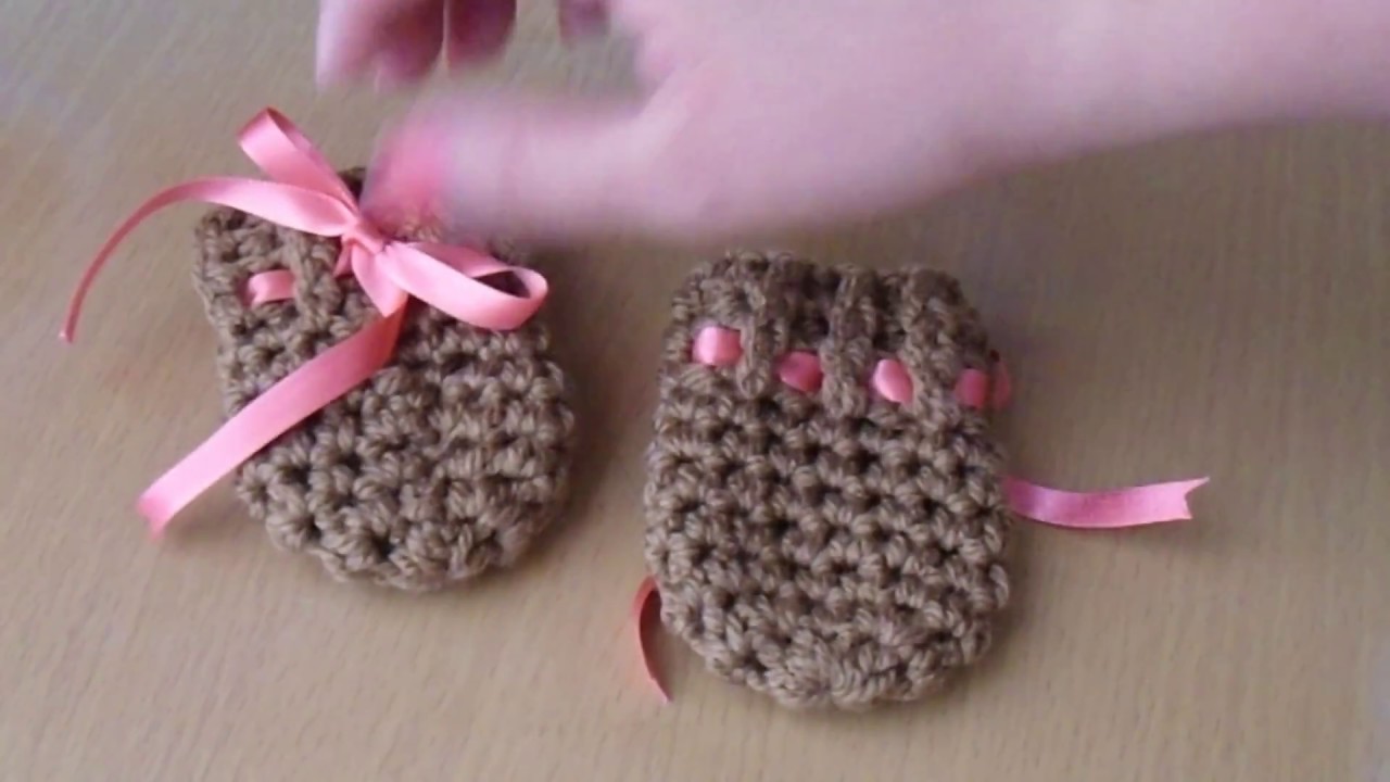 como hacer guantes (manoplas) tejidos a crochet para bebe - YouTube