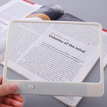 Amazon.com: Lupa de lectura manual con luz grande rectangular página completa 3X lupa para leer pequeñas impresiones y baja visión, color blanco : Arte y Manualidades