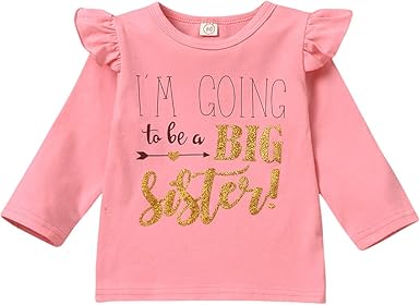 Amazon.com: JEELLIGULAR Ropa para niñas pequeñas promovida a la gran hermana imprimir camisetas de manga larga, Camiseta con volantes rosas Big Sister, 3-4T : Ropa, Zapatos y Joyería