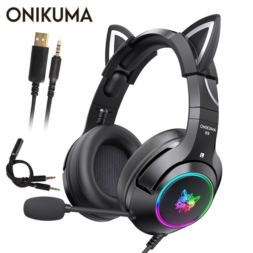 Audífonos Gamer Onikuma k9 Usb 7.1 Rgb Orejas De Gato Pc