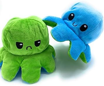 GS1 Global Office Pulpo Reversible, Pulpo de Doble Cara, Pulpo Sonriente y Triste, Regalar, Esponjoso, blandito y cariñoso. (Azul-Verde) : Amazon.es: Juguetes y juegos