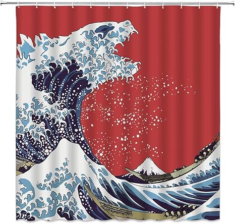 Amazon.com: Hokusai Great Wave Cortina de ducha, japonesa Gran ola de Kanagawa como Godzilla Ocean Boat Japón Monte Fuji para niños tela de baño decoración juegos con 12 ganchos, 71 x 71