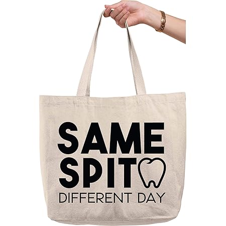 Amazon.com: Mismo escupir día diferente divertido dentista dientes higienista dental natural lona bolsa de asas regalo divertido : Hogar y Cocina