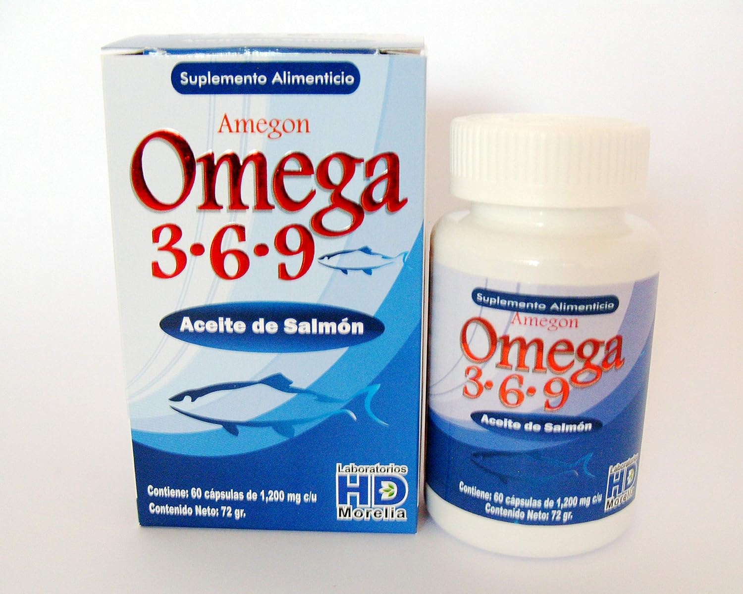 Amegon Omega 3 6 9 Aceite de Salmón con Aceite de linaza y Oliva, 60 caps (72 g) , Empaque Varia : Amazon.com.mx: Salud y Cuidado Personal