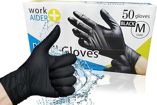 Amazon.com: WORK AIDER Guantes desechables de nitrilo negro, paquete de 50 unidades, tamaño mediano, 3 mil, sin látex, para exámenes, preparación de alimentos, limpieza industrial del hogar, jardinería : Salud y Hogar