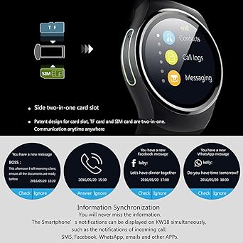 Amazon.com: Keoker KW18 Reloj inteligente para teléfonos Todo en uno SmartWatch Bluetooth Apoyo TF tarjeta SIM Pulsaciones cardíacas Usable Aplicación para Android iOS, Blanco : Electrónica