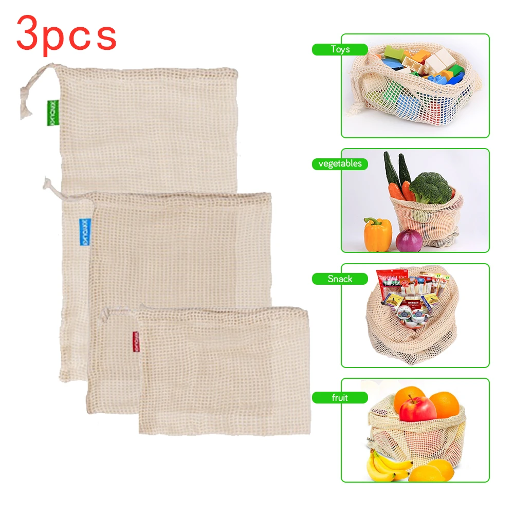 Bolsas de malla reutilizables para frutas y verduras, bolsa ecológica para almacenamiento de comestibles, organizadora de compras, 3 tamaños|Bolsos y cestas| - AliExpress