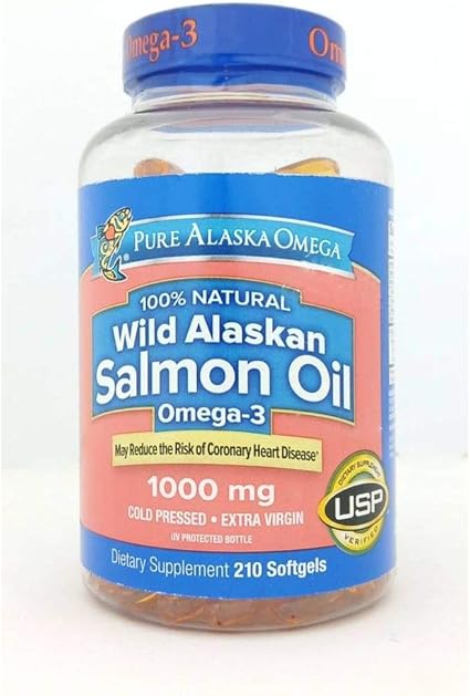 Amazon.com: Pure Alaska Omega -3 Aceite de Salmón de Alaska Salvaje 1000mg 210 ct : Salud y Hogar