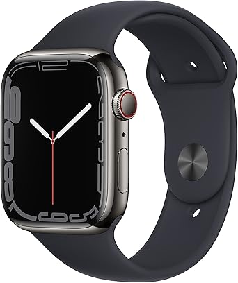 Amazon.com: Apple Watch Series 7 [GPS + Cellular 45mm] Smart Watch w/ Graphite Stainless Steel Case with Midnight Sport Band. Fitness Tracker, Blood Oxygen \u0026 ECG Apps, Always-On Retina Display, Water Resistant :