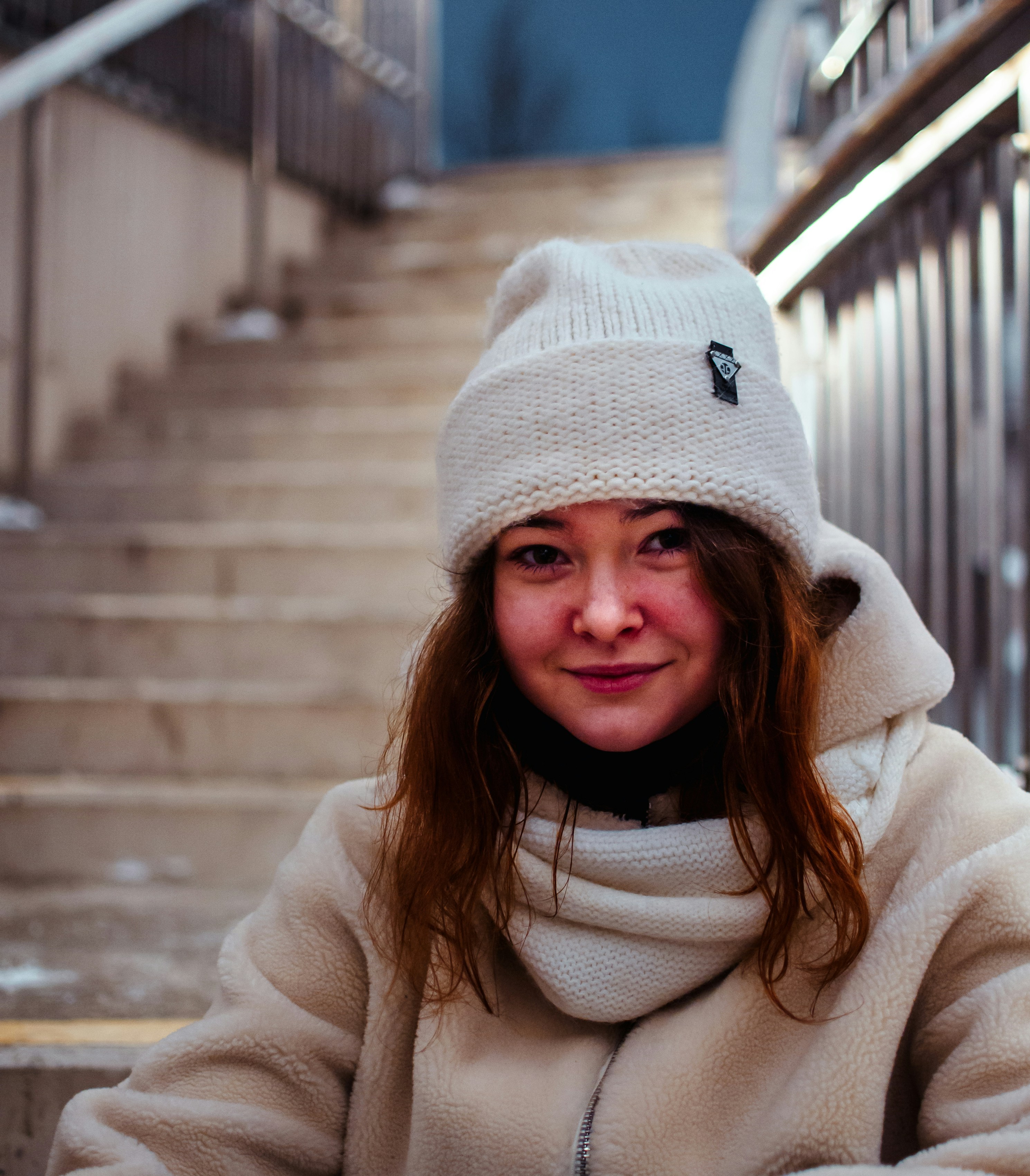 Foto de chica con gorro de punto blanco y bata blanca parada en escaleras de hormigón gris durante el día – Imagen gratuita en Unsplash
