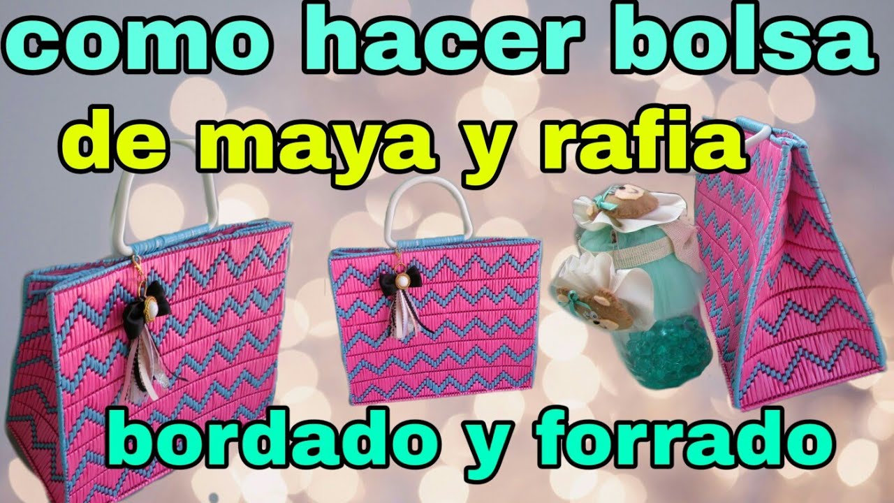 Cómo hacer una bolsa de malla plastica y rafia con forro dentro/armada y cosida paso a paso - YouTube