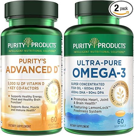 Amazon.com: Kit de aceite de pescado ultra puro Dr. Cannell D + Omega-3 de productos pureza – Advanced D está empaquetado con vitamina D, vitamina K2, zinc, citrato de magnesio, boro y