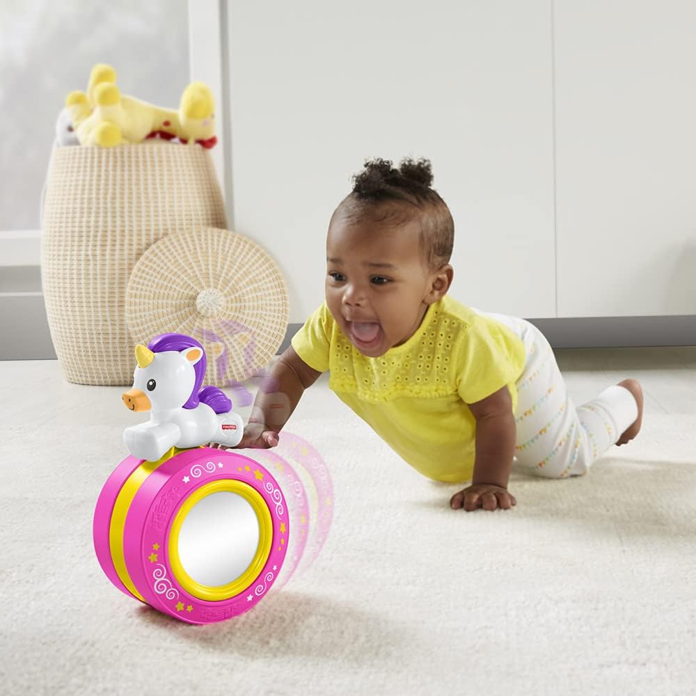 Amazon.com: Fisher-Price Crawl along Musical Unicorn - Desarrolla habilidades motoras brutas, autodescovey y causa y efecto ~ Ideal para el tiempo de barriga : Juguetes y Juegos