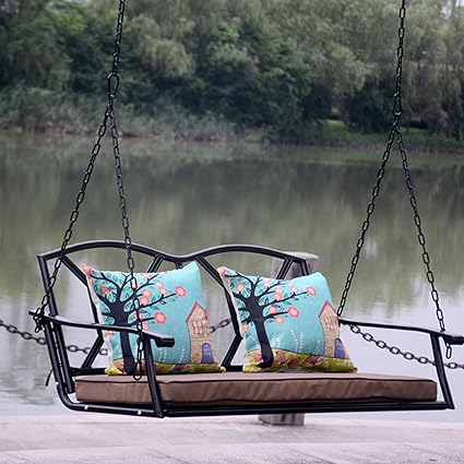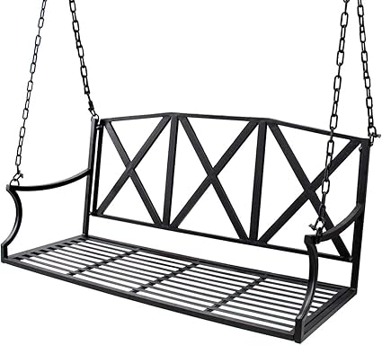 Silla colgante de hierro para exteriores con un solo columpio, mecedora de hamaca para adultos para terraza de jardín, columpio de porche de metal antioxidante resistente con cadena para colgar : Amazon.es:
