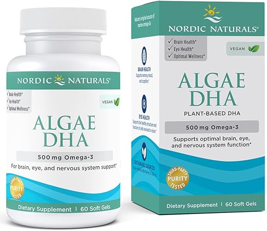 Amazon.com: Nordic Naturals Algas DHA - 500 mg Omega-3 DHA - 60 geles blandos - Aceite de algas vegano certificado - DHA a base de plantas - Soporte para el cerebro, los