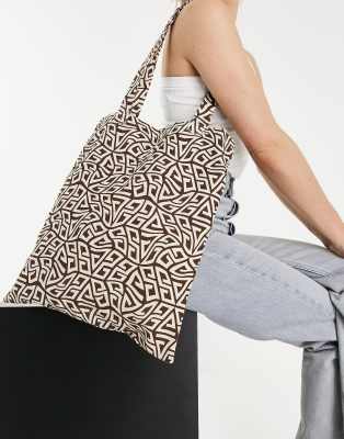 Bolso shopper con estampado de monograma combado de lona de ASOS DESIGN | ASOS