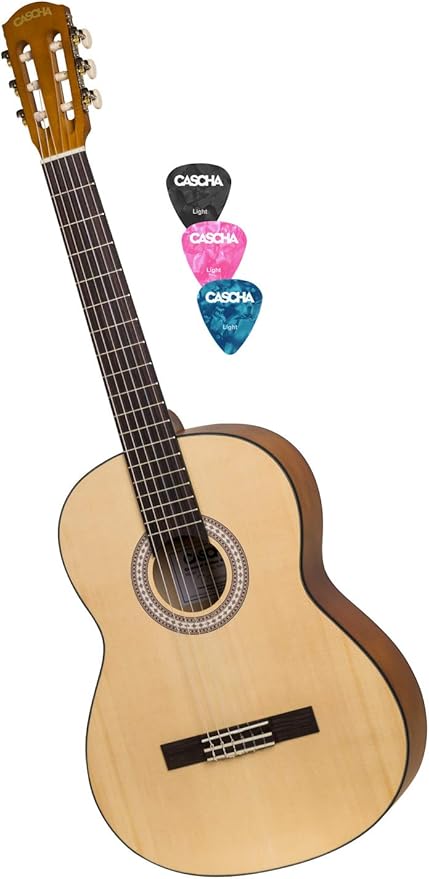 CASCHA Student Series 4/4 guitarra clásica, guitarra para principiantes y niños a partir de 10 años, guitarra acústica, guitarra clásica, cuerdas de nailon, incluye 3 púas : Instrumentos Musicales - Amazon.com