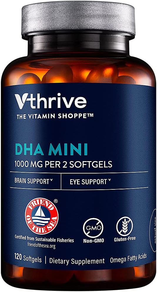 Amazon.com: DHA Mini ácidos grasos Omega para soporte de ojos cerebrales 1.000 MG, ácidos grasos Omega, 120 cápsulas blandas, por Vthrive : Salud y Hogar